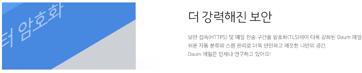 외부메일도 한눈에 확인해볼 수 있습니다 다음과 네이버 구글 네이트 등 사용 중인 메일 주소를 간편하게 연결해 볼 수 있습니다 또한 더 강력해진 보안 https 접속을 통해서 스팸 관리가 더욱 안전하게 사용할 수 있습니다